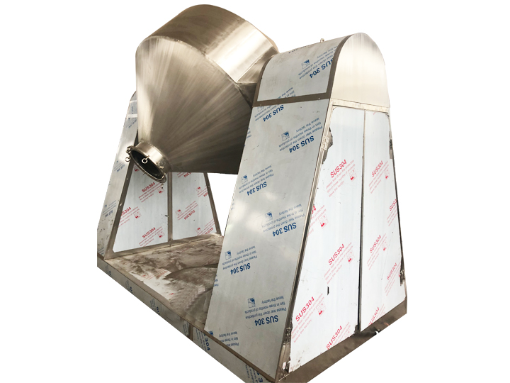本機將粉末或粒狀物料通過真空輸送或人工加料到雙錐容器中,隨著容器的不斷旋轉(zhuǎn),物料在容器中進行復(fù)雜的撞擊運動,達到均勻的混合。
